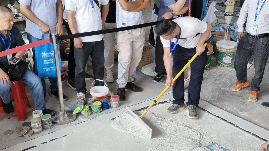 本次培訓(xùn)由廣東省地坪協(xié)會(huì)主辦,廣州市澳恒建筑裝飾材料有限公司和廣州美石機(jī)械科技有限公司聯(lián)合承辦,通過(guò)理論與實(shí)操相結(jié)合的方式,讓學(xué)員熟悉并掌握無(wú)機(jī)磨石等新型無(wú)機(jī)地坪的施工技術(shù)。